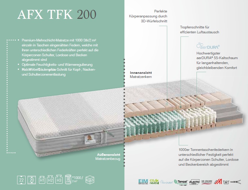 90 x 200 cm, Höhe 22cm